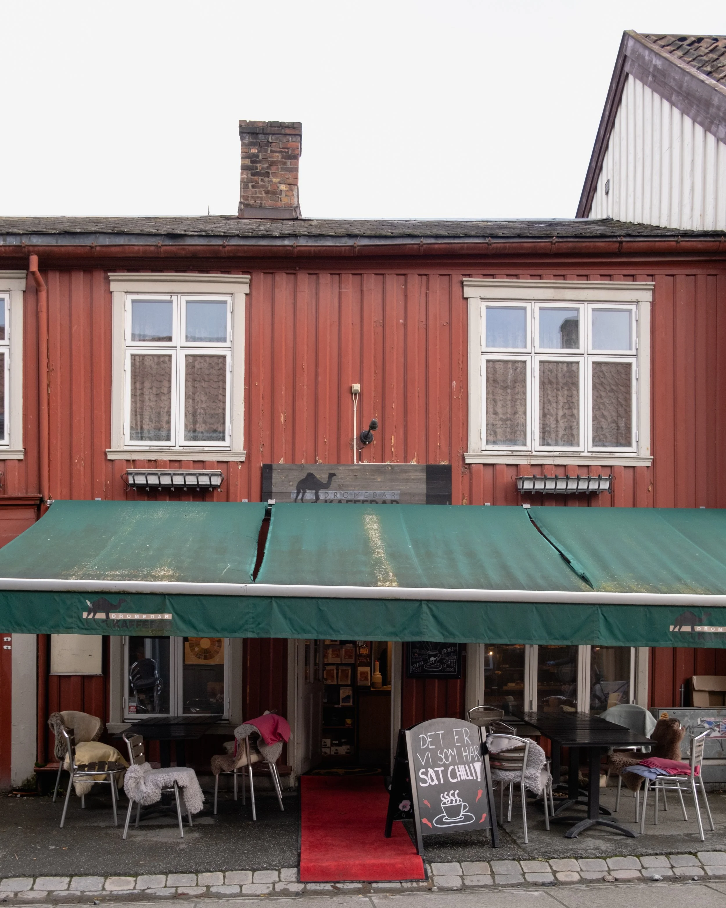 Det ble en fin siste tur på Dromedar Bakklandet i dag. Jeg og min bedre halvdel var der en halvtime før stengetid og det var helt fullt inne i kafeen. Det virket som om det var flere som hadde tatt turen for en siste kaffe i den veldig sjarmerende kafeen i en av Trondheims mest besøkte gater.